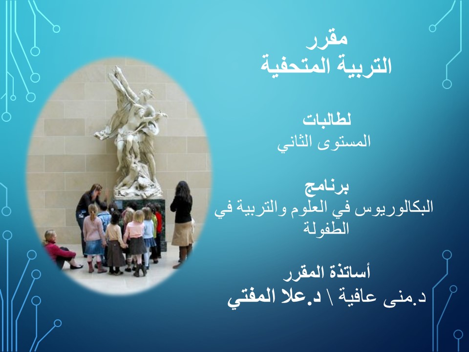 مقرر التربية المتحفية يهدف إلى تعريف الطالبة المعلمة بالمتاحف عموما ومتاحف الطفل خصوصا، ودورها في العملية التربوية والتعليمية لطفل الروضة.