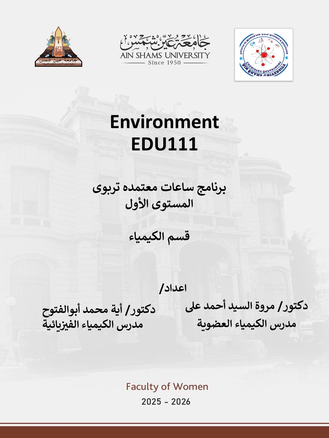 البيئة-EDU111- مستوى أول- كيمياء تربوي - اعدادي وثانوي